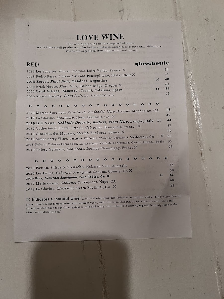 The Love Apple Menu